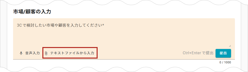 市場調査レポートやアンケート結果、顧客データなどのファイルがある場合、ファイルを読み込むことで情報を入力することができます。