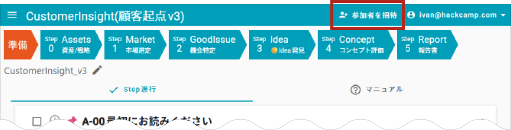 共創ナビivanの会議に参加者を招待する方法を説明します。