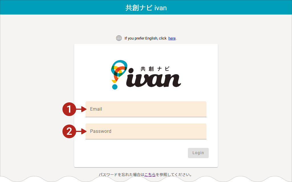 ログインIDを入力します。ログインIDは事前登録したメールアドレスです。