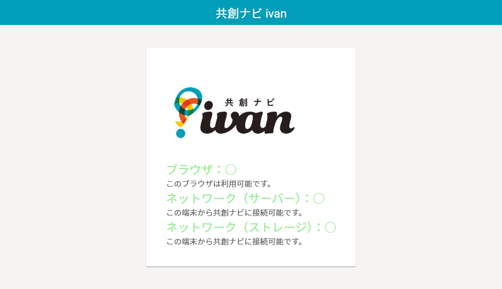 現在環境で、共創ナビivanが利用可能かどうか確認するために、以下のURLにアクセスします。