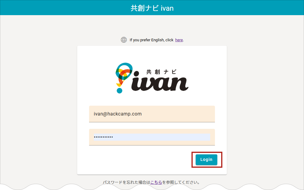 メールアドレスとパスワードを入力すると、「Login」ボタンが有効になります。