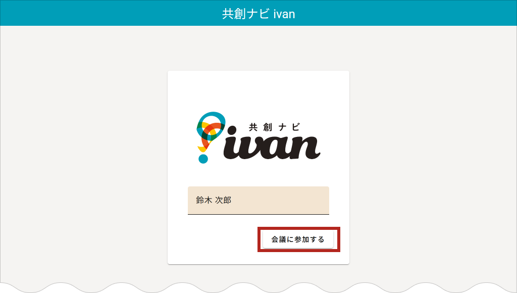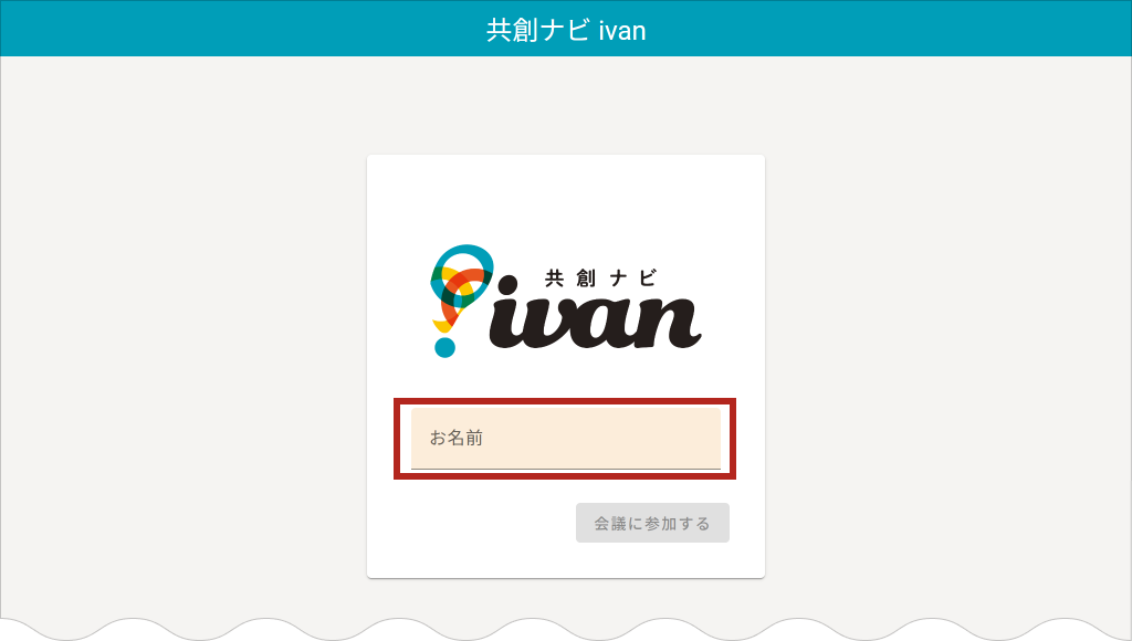 会議の開催者から共有されるURLをクリックします。名前を入力します。