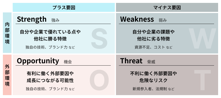 SWOT分析を経営戦略のインプット資料として利用できます。