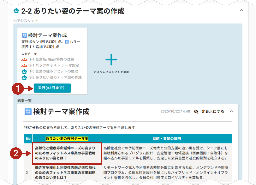 候補を生成するAIアシスタントは、複数のアイデアを生成します。その中から人間がアイデアを選択し結果を導きます。