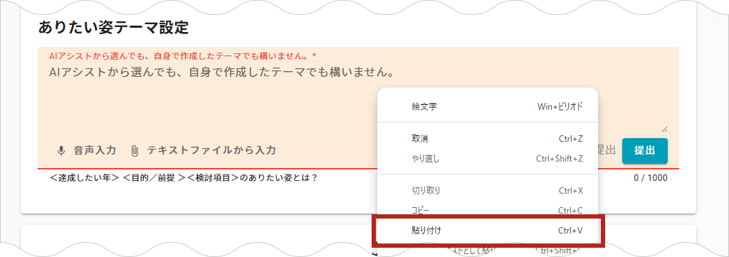 入力フィールドで右クリックし、「貼り付け」をクリックします。