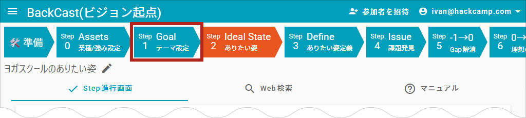 メインエリア上部にあるステップメニューから、元のページに戻ります。