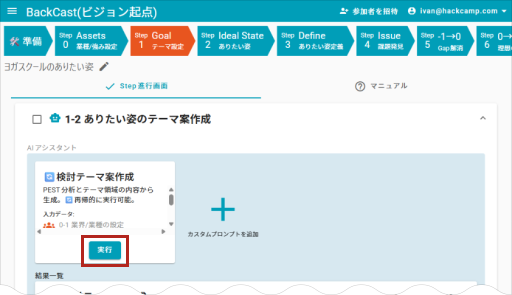 「実行」ボタンをクリックすると、新しい入力データからの結果が得られます。結果は、結果一覧の一番上に表示されます。