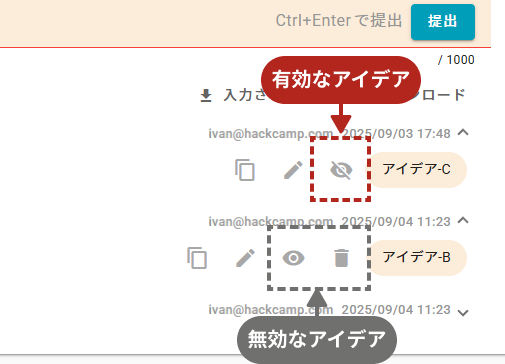 このページでは、入力したアイデアを「無効にする」「削除する」方法を、実際の活用シーンに沿って紹介します。基本的な入力方法は以下のページをご覧ください。
