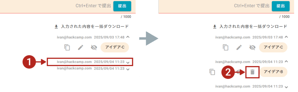 削除アイコンをクリックすると、そのアイデアは削除されます。