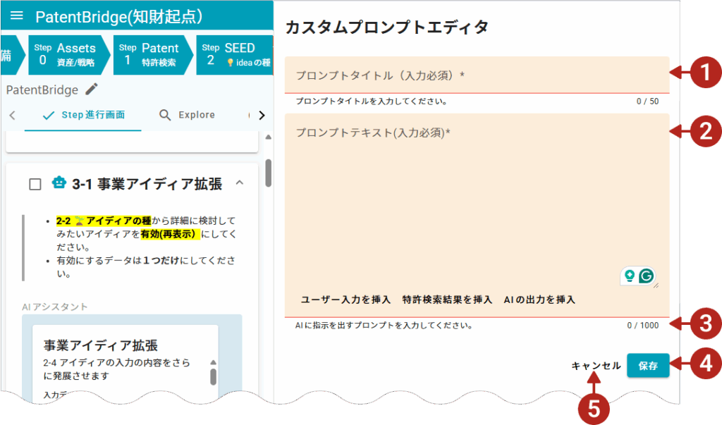 プロンプトタイトルを50文字以内で入力します。 - プロンプトエリア