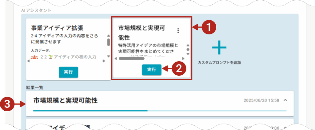 実行ボタンをクリックしてAIアシスタントを実行します。 - 結果一覧